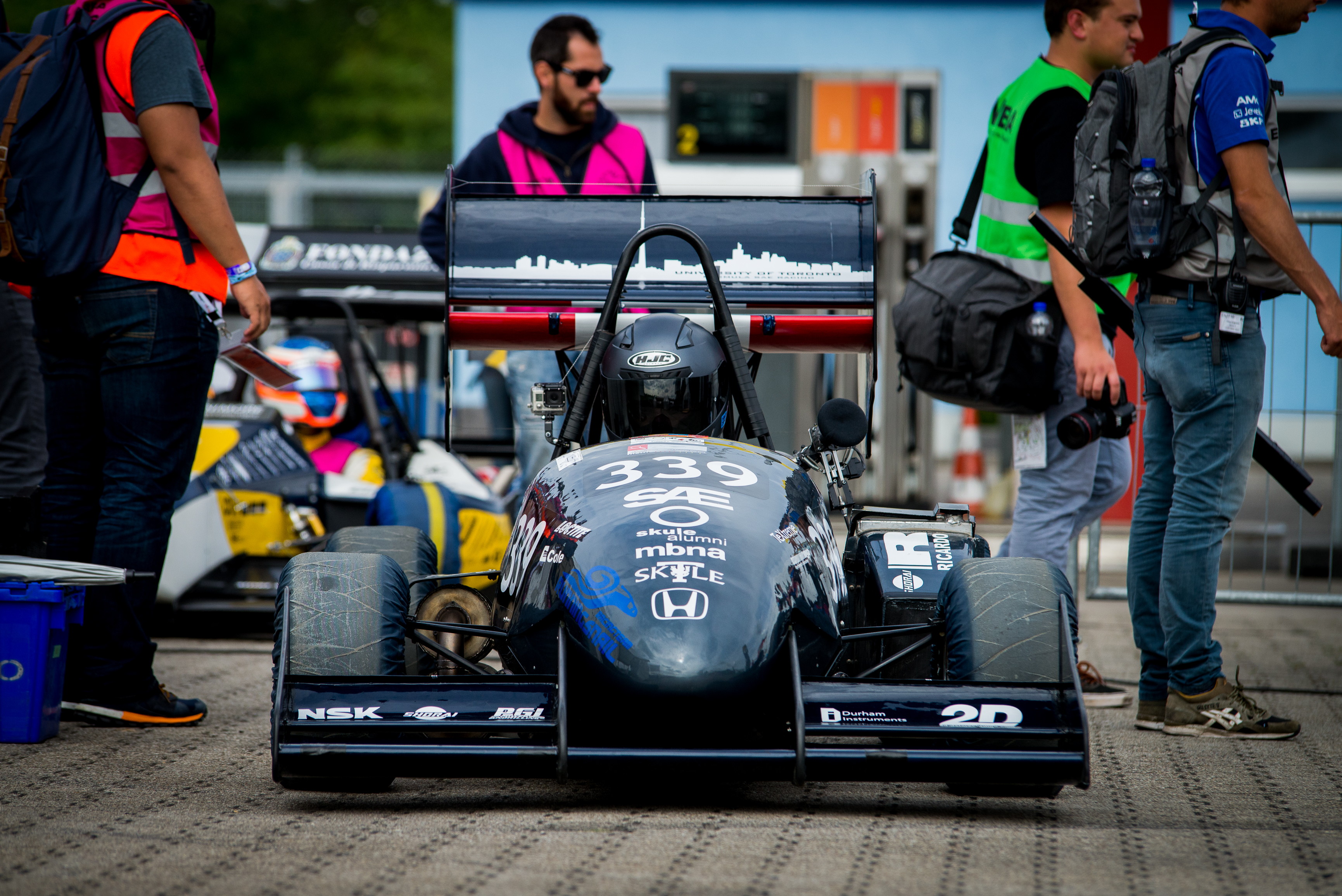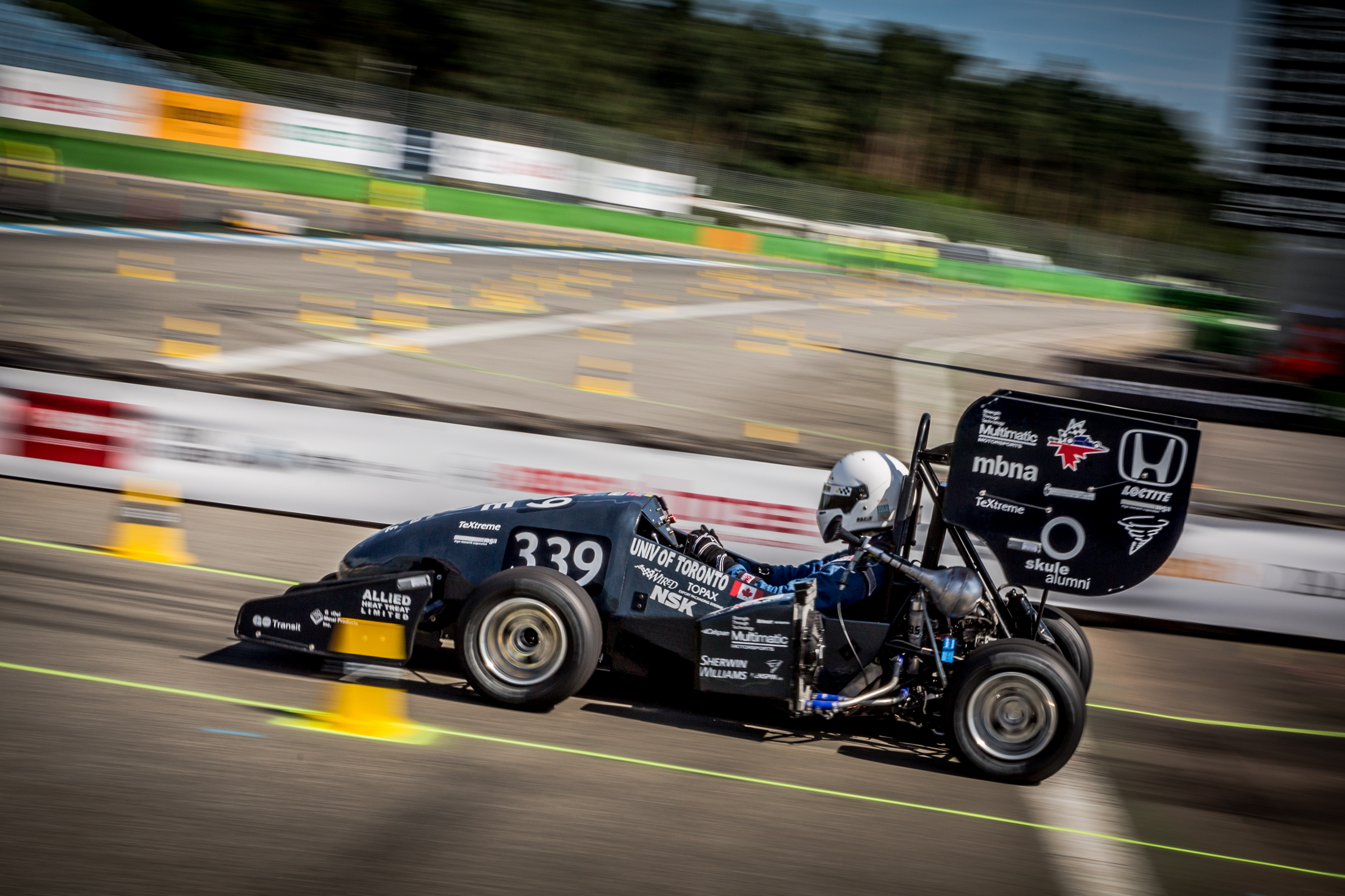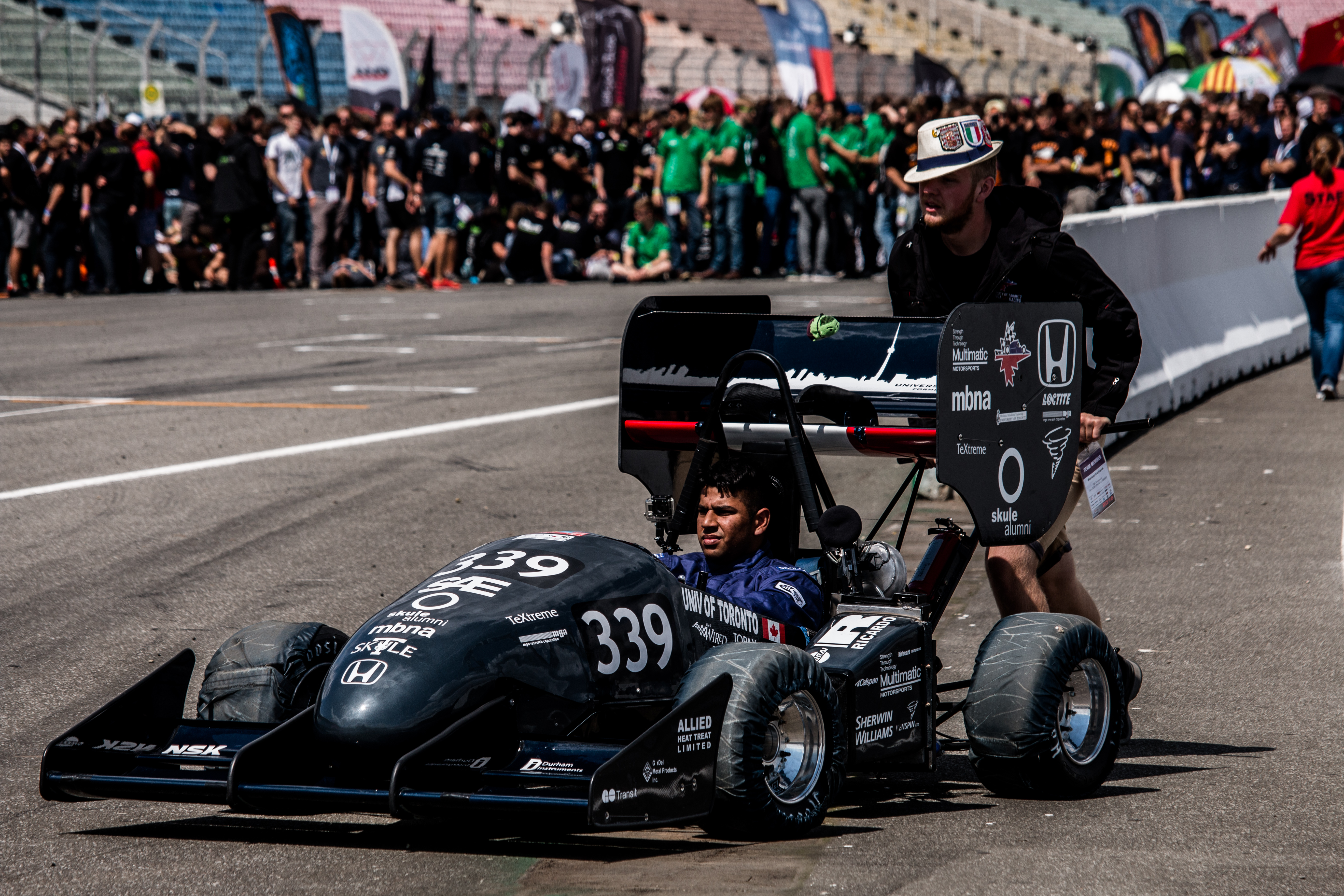 UT16 soared to new heights, demonstrating remarkable progress. This car was the first car built by UTFR that had an aero package allowing for 35 Kg of downforce at 55 km/hr. The wings for were designed by an exchange student from Scotland by the name of Mariusz Kucharek. The team experienced delays to working on the car because the shop was under renovation! The newly renovated shop allowed the team to work harder than ever on a great looking and performing racecar. This car suffered very bad understeer, however this was fixed by Roberts Strenga who drifted the entire FSG endurance track which was famously mentioned by the commentator in the video you can see below at 1:36:17.
